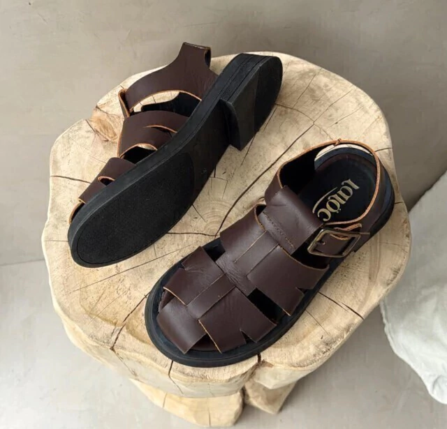 Fabricada en cuero vacuno de alta calidad, cuenta con una hebilla metálica que aporta un toque sofisticado y permite un ajuste perfecto. Su base de goma flexible de 3,5 cm garantiza confort en cada paso.