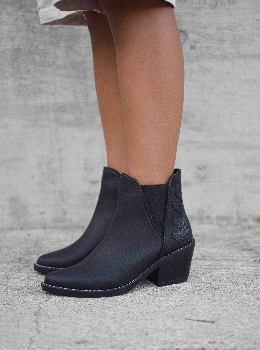 texana de cuero con detalle de charol en  talonera